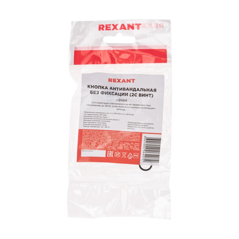 Выключатель-кнопка антивандальная Ø12 Б/Фикс 250В (2с винт) OFF-(ON) REXANT предназначена для коммутации электрических цепей напряжением до 250В путем включения-выключения питающего провода. Металлические кнопки применяются в местах, где существует большой риск их повреждения (на различных производственных линиях, в лифтовых кабинах, около входной двери и т.д.), а также для декоративного оформления панелей управления. Главными отличительными особенностями такой кнопки являются металлическое исполнение и неуязвимость контактной группы, что обеспечит ей долговечное функционирование. Изделие состоит из двух основных частей - лицевой части (головки) и контактной, и имеет пружинный возвратный механизм. Монтаж осуществляется без применения винтов на плоских панелях толщиной от 0.5мм до 5мм. Подключение проводов осуществляется с помощью винтовых зажимов, пайки или разъемом.