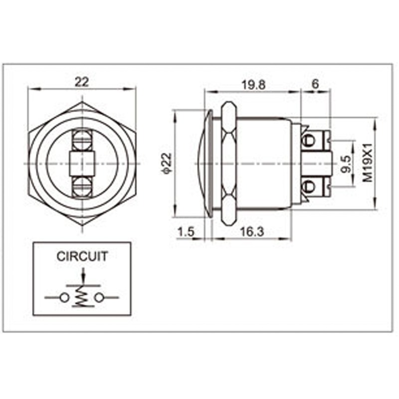 Кнопка антивандальная Ø19 Б/Фикс (2с винт) OFF-(ON) сфера предназначена для коммутации электрических цепей переменного тока напряжением до 250В путем включения-выключения питающего провода. Такие кнопки применяются в местах, где существует большой риск их повреждения (на различных производственных линиях, в лифтовых кабинах, около входной двери и т.д.). Главными отличительными особенностями антивандальной кнопки являются металлическое исполнение и неуязвимость контактной группы, что обеспечит ей долговечное функционирование. Изделие состоит из двух основных частей - лицевой части (головки) и контактной, и имеет пружинный возвратный механизм. Монтаж осуществляется без применения винтов на плоских панелях толщиной от 0.5мм до 10мм. Подключение проводов осуществляется с помощью винтовых зажимов.<br> Основные характеристики:<br> Номинальное напряжение и ток: 3A/36V(DC) 3A/250V(AC);<br> Тип переключения: OFF-(ON);<br> Количество контактных групп: 1;<br> Количество контактов в контактной группе: 2;<br> Фиксация положений: отсутствует;<br> Индикатор коммутационных положений: отсутствует;<br> Установочный диаметр: 19мм;<br> Рабочая температура: от -25℃ до +85℃;<br> Степень защиты (IP): IP65;<br> Ресурс: 10 000 циклов.<br> Преимуществами использования данного изделия является надежность, быстрота и удобство монтажа.