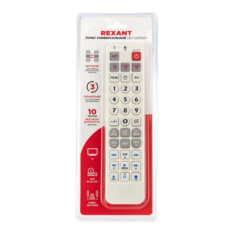 Пульт универсальный обучаемый на 3 устройства REXANT