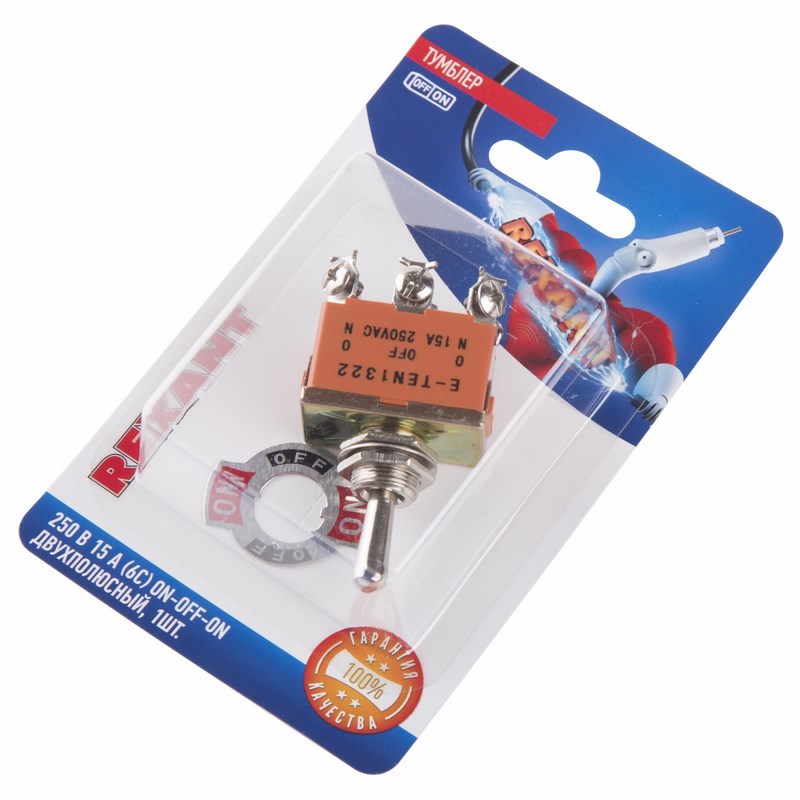 Тумблер 250V 15А (6c) ON-OFF-ON двухполюсный (KN-203) REXANT (в упак. 1шт. )