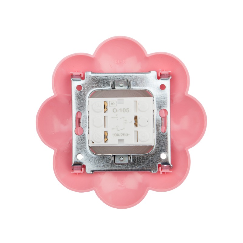 Выключатель двухклавишный KRANZ HAPPY Цветок скрытой установки, белый/розовый