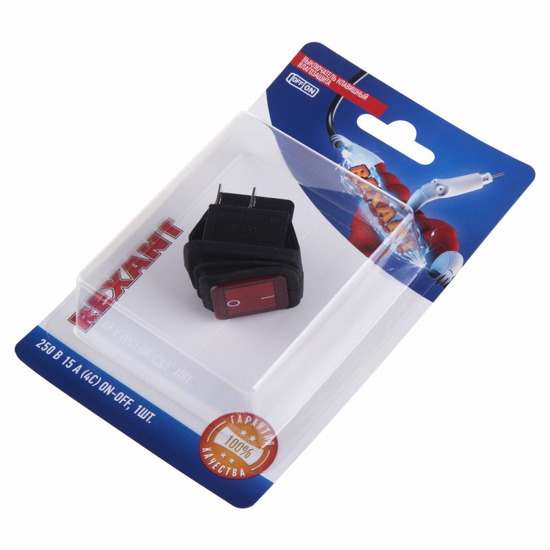 Выключатель клавишный 250V 15А (4с) ON-OFF красный с подсветкой ВЛАГОЗАЩИТА (RWB-507) REXANT (в упак. 1шт. )