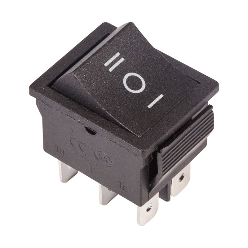 Выключатель клавишный 250V 15А (6с) ON-OFF-ON черный с нейтралью (RWB-508, SC-767) REXANT (в упак. 1шт. )