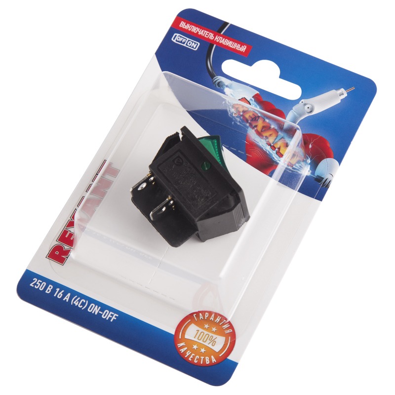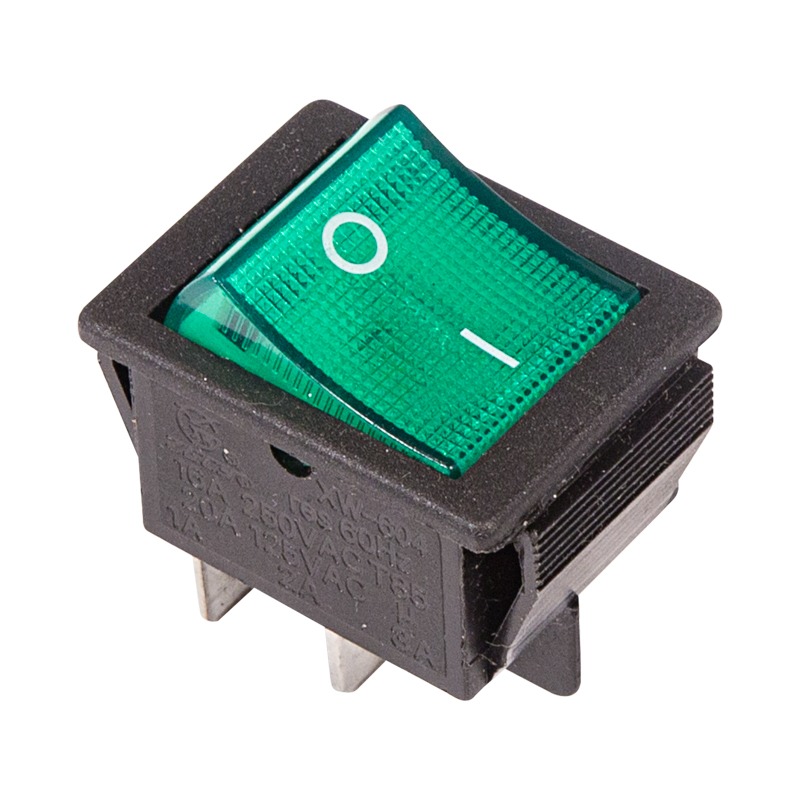 Выключатель клавишный 250V 16А (4с) ON-OFF зеленый с подсветкой (RWB-502, SC-767, IRS-201-1) REXANT (в упак. 1шт. )