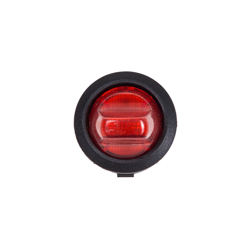 Выключатель клавишный круглый 12V 16А (3с) ON-OFF красный с подсветкой предназначен для коммутации электрических цепей напряжением 12В. Клавишные (Рокерные) выключатели применяются в качестве комплектующих изделий различного электрооборудования (в аудио-оборудовании, блоках питания, электроустановках на различных производствах, автомобилях, и многих других местах). Такой переключатель имеет два положения и специфическую форму клавиша-тумблер. Принцип действия основан на перемещении клавиши в одну из позиций. Для переключения в нужное положение требуется приложить некоторые усилия на клавишу. Монтаж осуществляется без применения винтов на плоских панелях толщиной от 0.8мм до 3мм. Подключение контактов осуществляется плоской клеммой либо с помощью пайки.