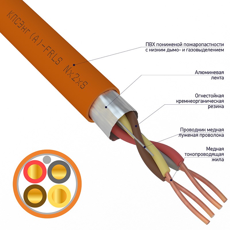 Кабель для пожарной сигнализации КПСВВнг(А)-LSLTx 2x2x0,50мм², бухта 200м REXANT 1м