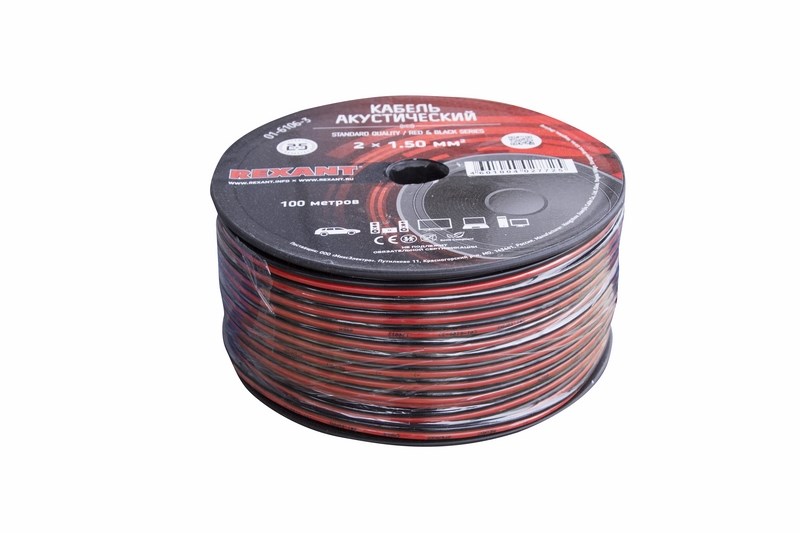 Кабель акустический 2х1,50 мм², красно-черный, 100 м, REXANT