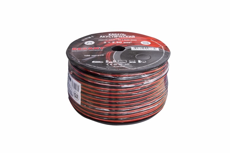 Кабель акустический 2х2,50 мм², красно-черный, 100 м, REXANT