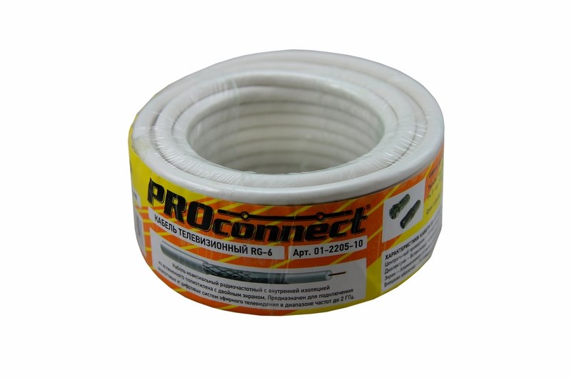Кабель RG-6U (75 Ом), 48 % белый (бухта 10 м) PROconnect коаксиальный радиочастотный со вспененной полиэтиленовой изоляцией и в ПВХ оболочке. Является самым распространенным решением для подключения внутренних и межблочных соединений общепромышленных и бытовых радиотехнических устройств, для подключения систем телевидения, а также для подключения видеокамер наружного и внутреннего наблюдения.
