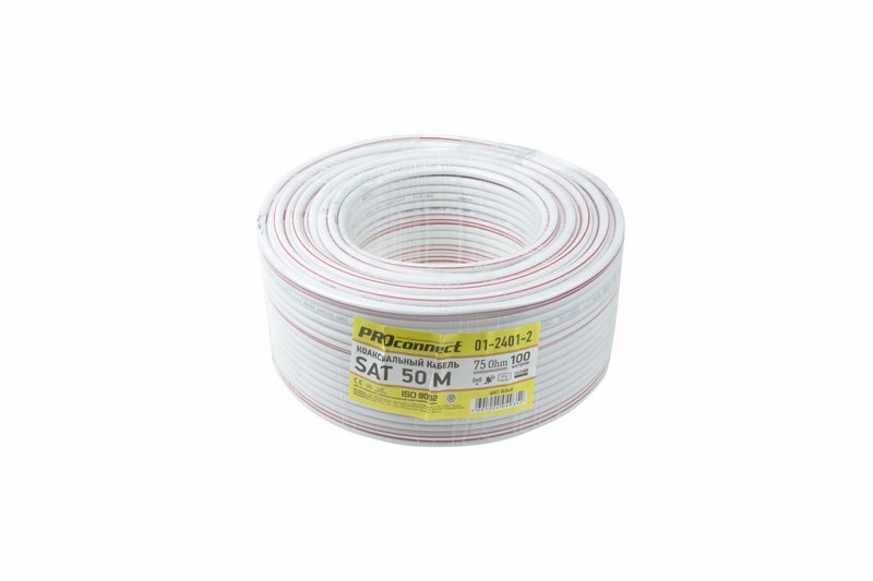 Кабель коаксиальный SAT 50 M, CCS/Al/Al, 75%, 75 Ом, 100 м, INDOOR, белый, PROconnect