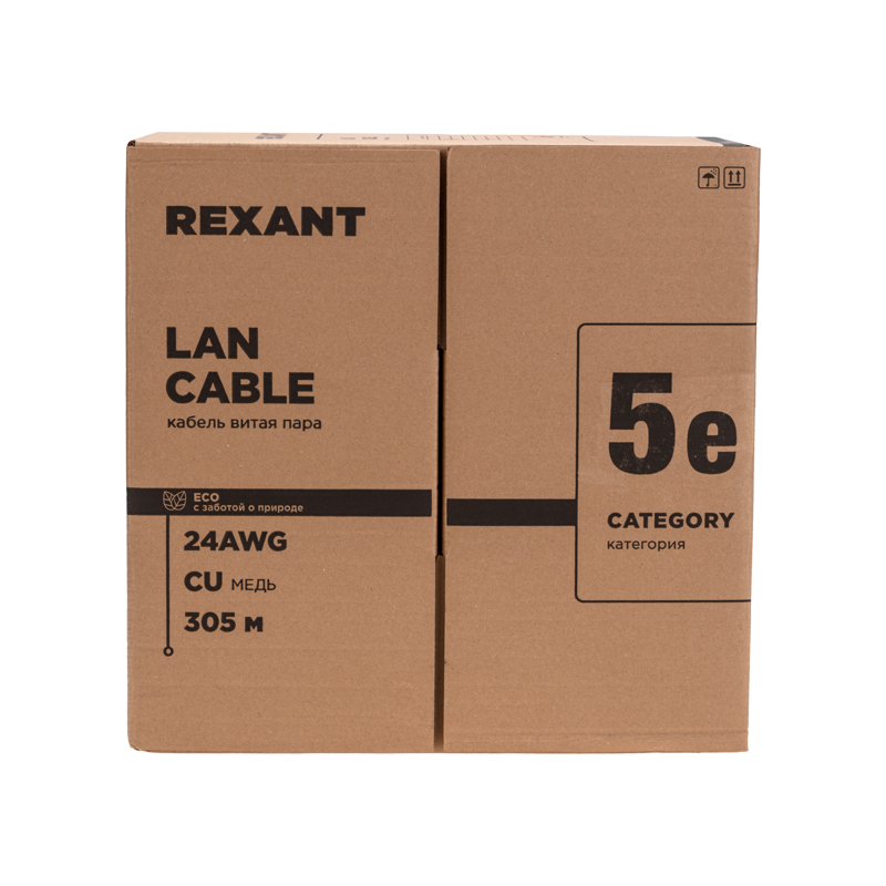 Кабель витая пара F/UTP, CAT 5e, PVC нг(А)-LS, 4х2х0,52мм, 4PR, 24AWG, INDOOR, SOLID, серый, 305м, РФ REXANT