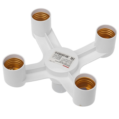 Цокольный разветвитель E27 на 4 гнезда предназначен для подключения нескольких ламп с цоколем E27 одновременно к одному источнику. Товар распространен как в сфере строительства, так и при монтажных работах и в быту.<br> <br> Источник питания: 220-240 В AC<br> Частота питания: 50/60 Гц<br> Номинальный ток: 2 А<br> Материал: пластик PBT<br> Цвет: белый
