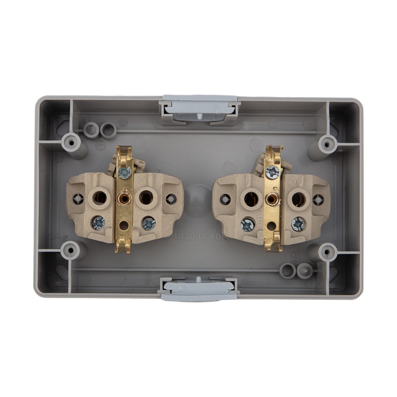 Блок горизонтальный 2 розетки (керамика) INDUSTRIAL IP54 с заземлением, о/у, серый KRANZ