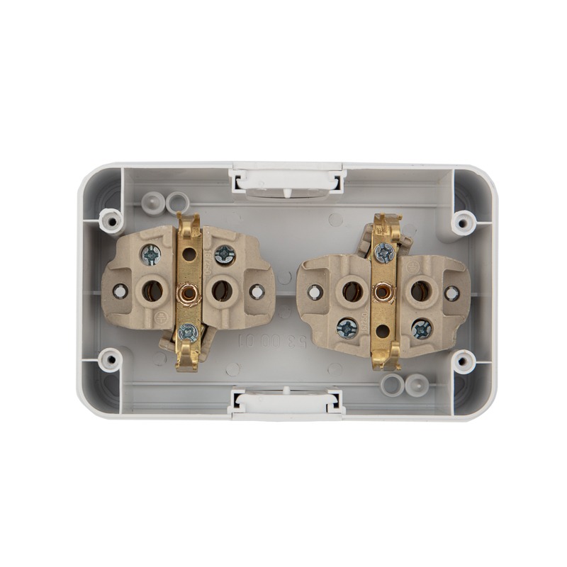 Блок горизонтальный 2 розетки (керамика) Mini OG IP54 с заземлением, о/у, белый KRANZ предназначен для организации электроснабжения не только в сухом помещении, но и во влажной и пыльной среде.