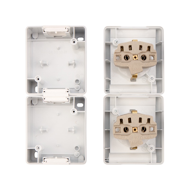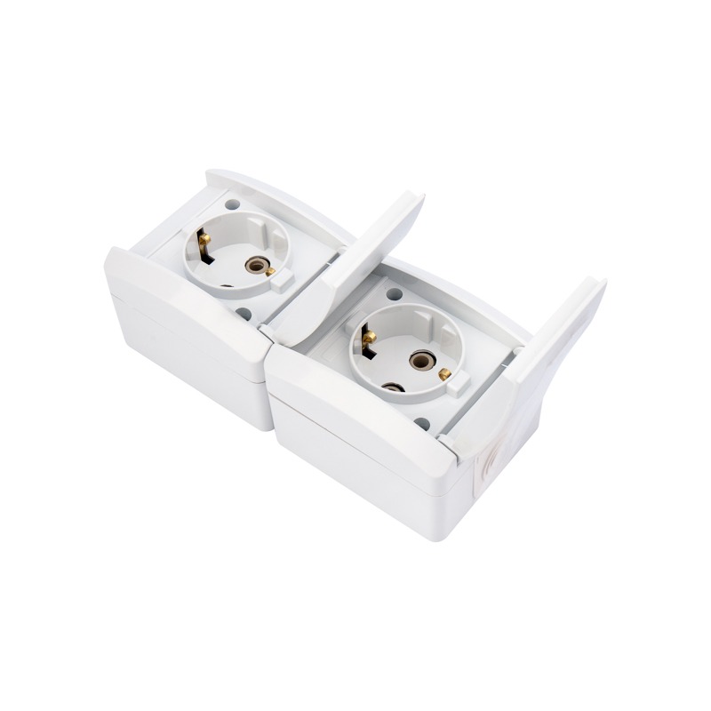 Накладной горизонтальный блок из двух розеток KRANZ предназначен для организации электроснабжения не только в сухом помещении, но и во влажной и пыльной среде.