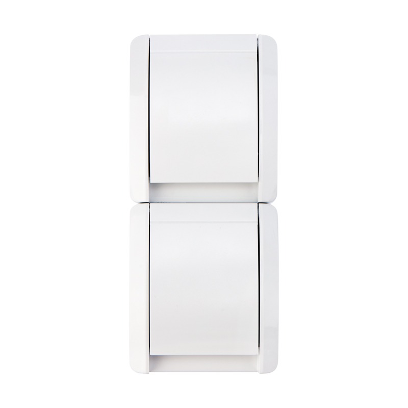Блок вертикальный 2 розетки (керамика) INDUSTRIAL IP54 с заземлением, о/у, белый KRANZ