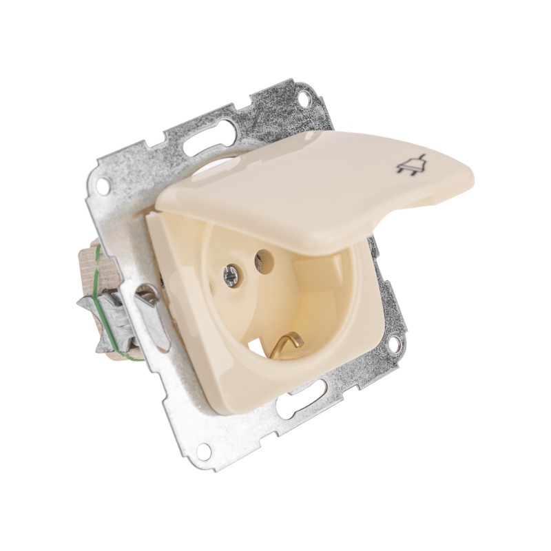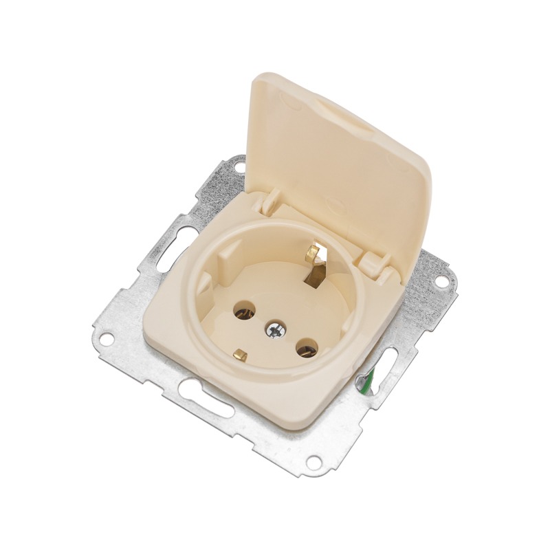 DEA Розетка 1-ая керамика с/з с крышкой с/у 16А мех. Беж KRANZ