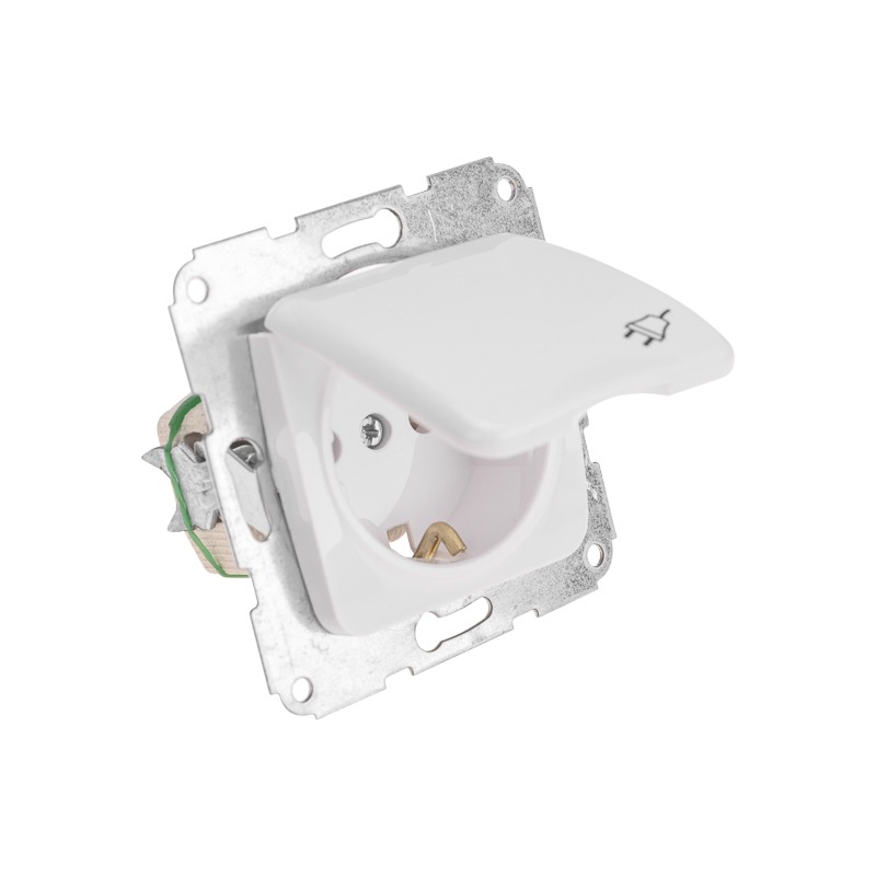 DEA Розетка 1-ая керамика с/з с крышкой с/у 16А мех. Бел KRANZ