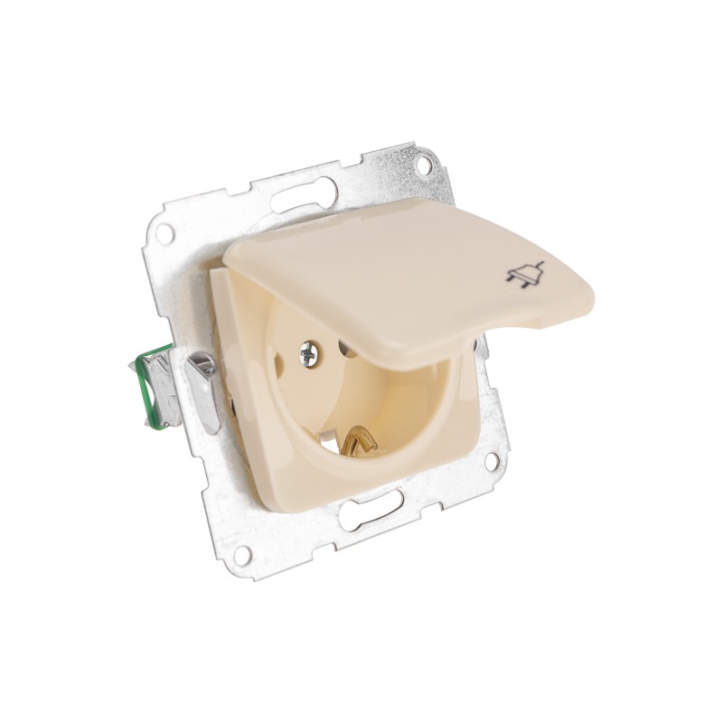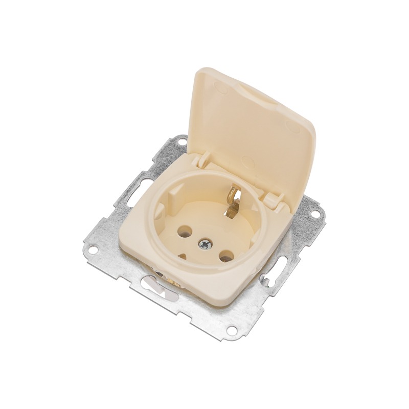 DEA Розетка 1-ая с/з с крышкой с/у 16А мех. Беж KRANZ
