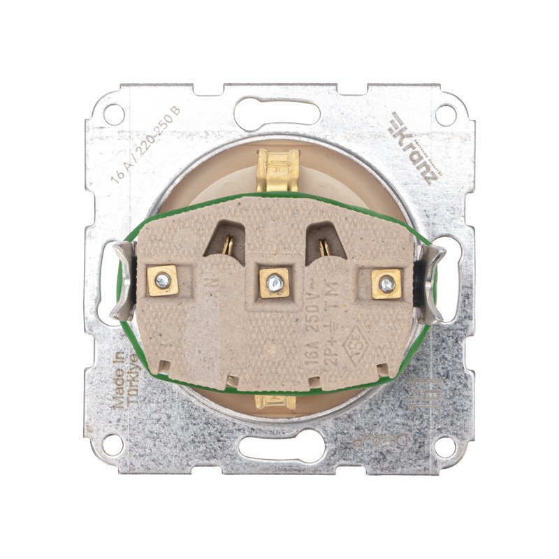 Механизм одинарной розетки KRANZ – серия DEA, для скрытого, монтажа на ток 16А , с заземлением. Предназначен для использования в квартирах, офисах, в загородном строительстве при подключении электроприборов к силовой электрической сети.