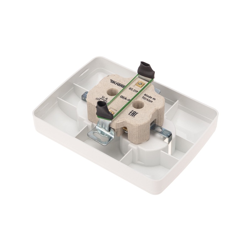 Розетка двойная KRANZ – серия DEA, материал керамика, для скрытого монтажа, на ток 16А, с заземляющим контактом. Механизм из керамики выдерживает большие температуры монтажа и эксплуатации. Предназначена для использования в квартирах, офисах, в загородном строительстве, в сухих помещениях с повышенным температурным режимом при подключении электроприборов к силовой электрической сети.
