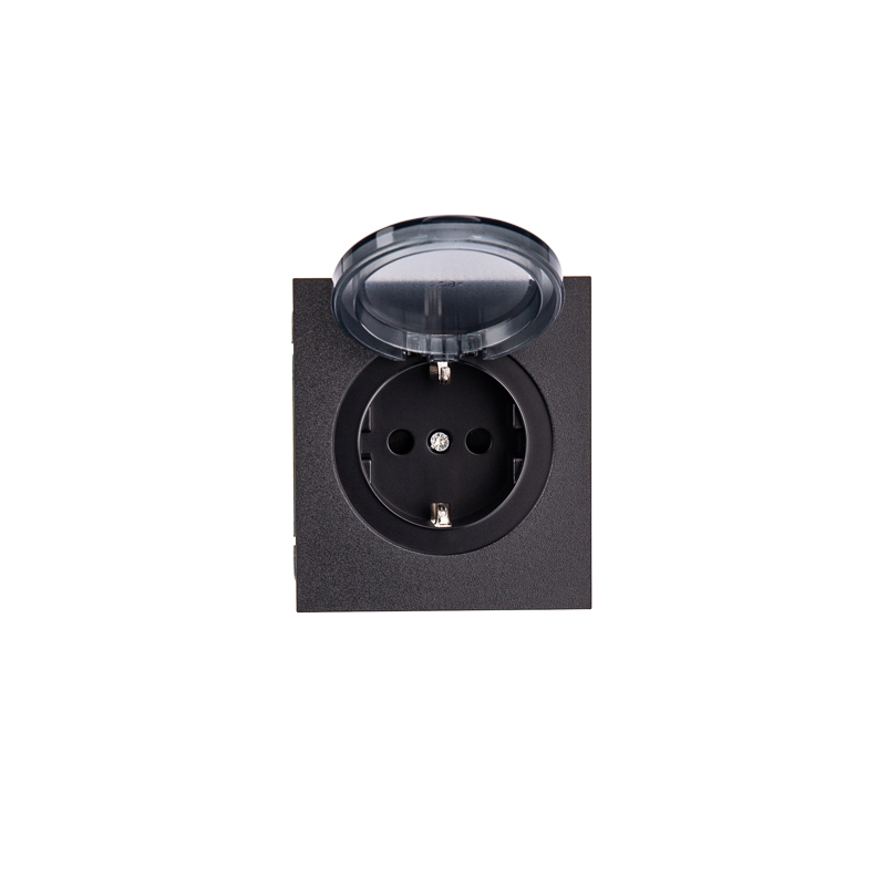 Розетка STRONG 1-ая с/з с/у, со шторками и крышкой 16А антрацит KRANZ