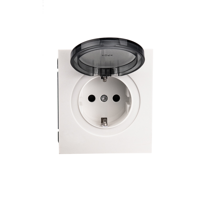 Розетка выполнена с заземлением, а также оснащена защитными шторками и крышкой для безопасности детей и защиты от поражения электрическим током.