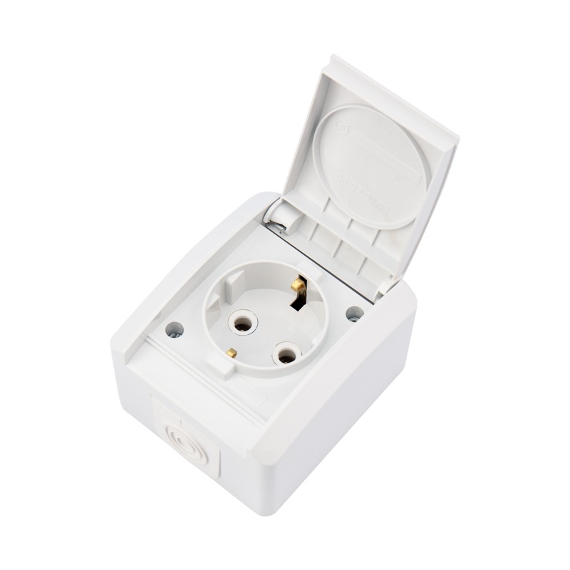 Защитная крышка на лицевой поверхности защищает розетку от попадания брызг воды. Отлично подойдет для дачи, ванной комнаты, бассейна и улицы, при наличии навеса, защищающего от прямого попадания влаги.