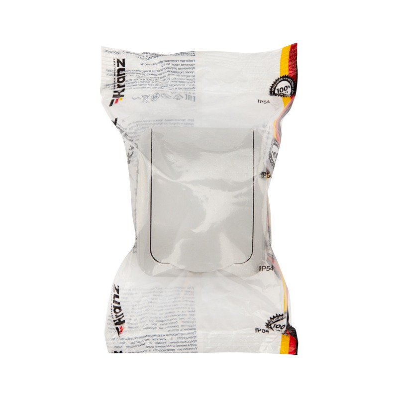 Розетка одноместная (керамика) Mini OG IP54, с заземлением, о/у, серая KRANZ