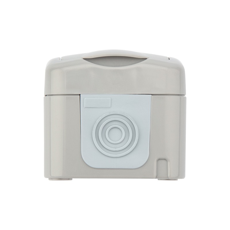 Защитная крышка на лицевой поверхности защищает розетку от попадания брызг воды. Отлично подойдет для дачи, ванной комнаты, бассейна и улицы, при наличии навеса, защищающего от прямого попадания влаги.