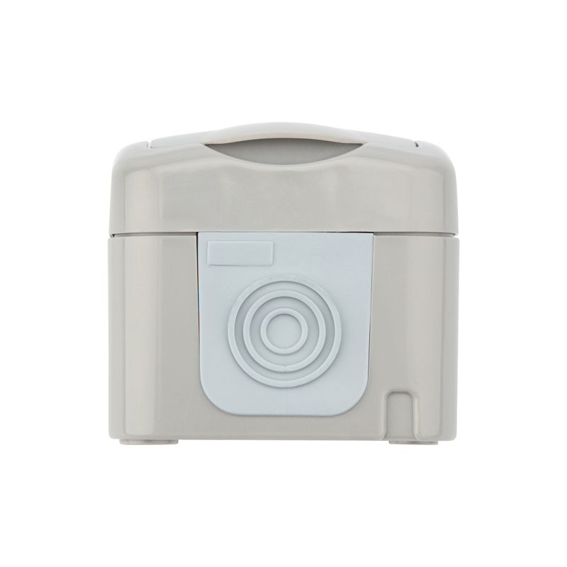 Защитная крышка на лицевой поверхности защищает розетку от попадания брызг воды. Отлично подойдет для дачи, ванной комнаты, бассейна и улицы, при наличии навеса, защищающего от прямого попадания влаги.