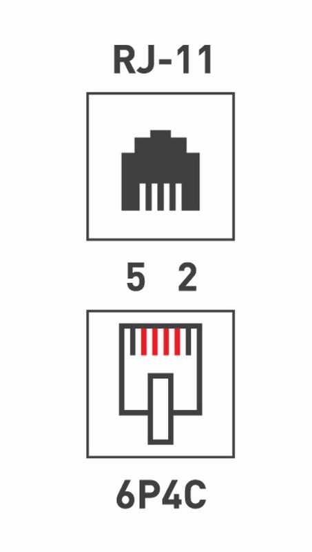 Телефонная Евро Розетка 1х6Р-4С имеет 6 пинов из которых 4 заняты медными контактами. Обычно 2 контакта используются под телефонную линию и еще 2 контакта под питание.
