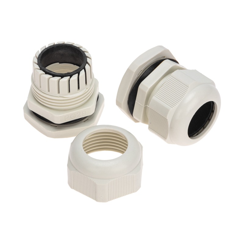 Кабельный ввод предназначен для фиксации кабеля при вводе его в электротехническое оборудование, например, коммутационные шкафы, короба, пульты управления, предназначенные для эксплуатации на улице, в подвалах, в условиях морского тумана, повышенного загрязнения и т. п. <br> Защищает кабель от повреждений об острые края оборудования в процессе эксплуатации. Конструкция гайки предотвращает раскручивание. <br> <br> Класс влагозащиты: IP68<br> Материал корпуса: нейлон<br> Материал уплотнителя: неопрен<br> Тип резьбы: PG<br> Диапазон рабочих температур: –40…+100 °C<br> Устойчив к агрессивным средам: соленая вода, слабые кислоты, алкоголь, масла, жиры, растворители общего назначения<br> Цвет: серый