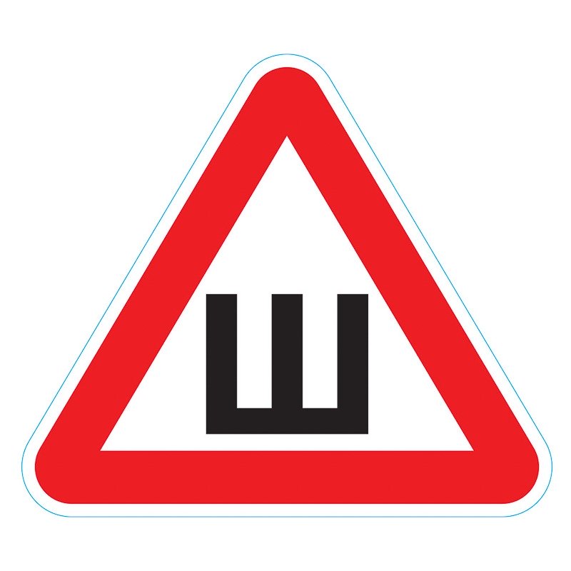 Наклейка автомобильная – знак «Шипы» клеится на заднее стекло автомобиля (с наружной стороны), при наличии на нем шипованных шин.