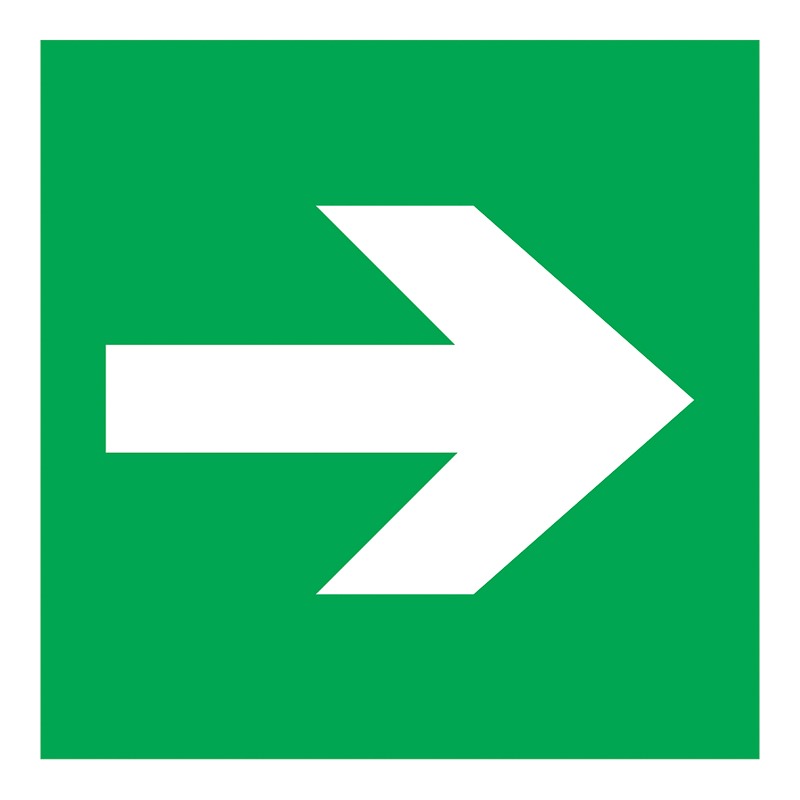 Знак безопасности (наклейка) указатель направление движения "Направляющая стрелка", как правило, размещается на стенах и ограждениях. Знак используется самостоятельно или в составе комбинированных знаков безопасности для указания направления движения к выходу/входу. Такие наклейки предназначены для своевременного информирования окружающих о путях выхода/входа, о путях экстренной эвакуации при возникновении чрезвычайных ситуаций. Они обязательны к размещению на предприятиях, в учреждениях, общественных зданиях и сооружениях.