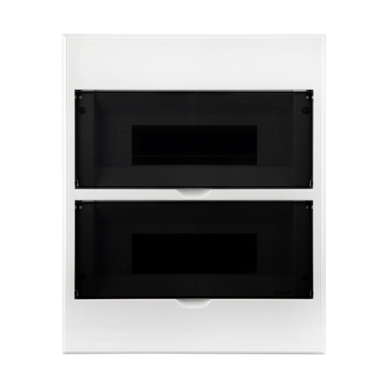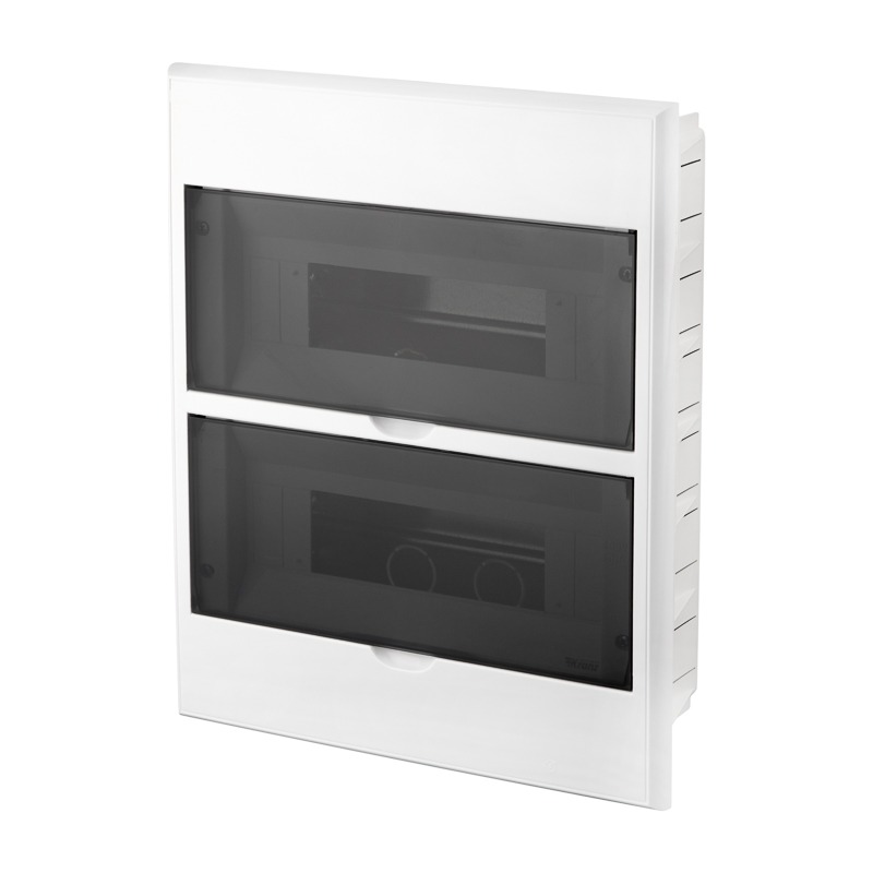 Бокс пластиковый ЩРВ-П IP41 предназначен для установки модульных устройств при распределении электроэнергии до 400 В в квартирах, офисах, жилых, муниципальных и технических помещениях. Корпус состоит из лицевой и несущей частей, выполненных из надежных и долговечных материалов: прозрачная дверца изготовлена из поликарбоната (позволяет видеть состояние автоматов без необходимости в открывании щитка), белая дверца – из ударопрочного ABS-пластика. Внутренняя часть корпуса с увеличенным пространством удобна для монтажа оборудования. Изделие выполнено в соответствии с нормами пожарной безопасности и изготовлено из материалов, которые не поддерживают горение. Современный дизайн позволяет устанавливать распределительный щиток в любое пространство. Внутри установлена стальная DIN-рейка для крепления на нее различных модульных устройств, в комплектацию также входит набор винтов для крепления. Произведено в Европе в соответствии со всеми стандартами безопасности (ГОСТ 14254 - 2015 и IEC 60529:2013).