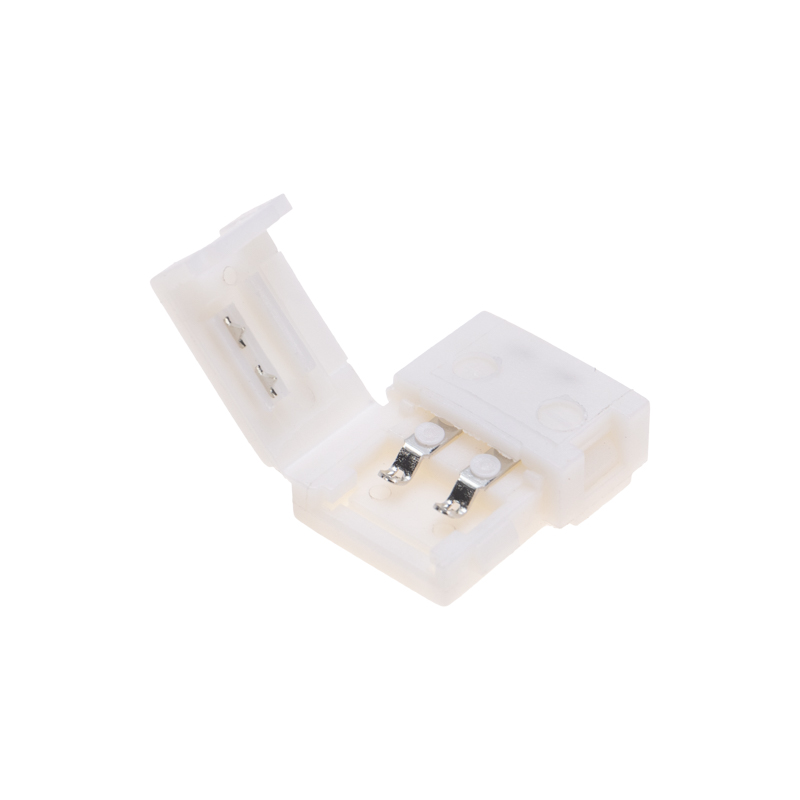 Коннектор выполнен в L-образной форме, позволяющей удобно и безопасно подключить ленты друг к другу под углом 90 градусов.