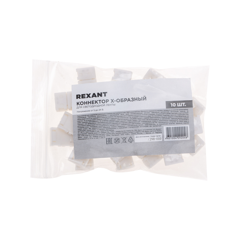 Коннектор выполнен в X-образной форме, позволяющей удобно и безопасно подключить ленты друг к другу. Представляет собой удобное решение для создания более сложных конфигураций и эффектов освещения в пространстве.