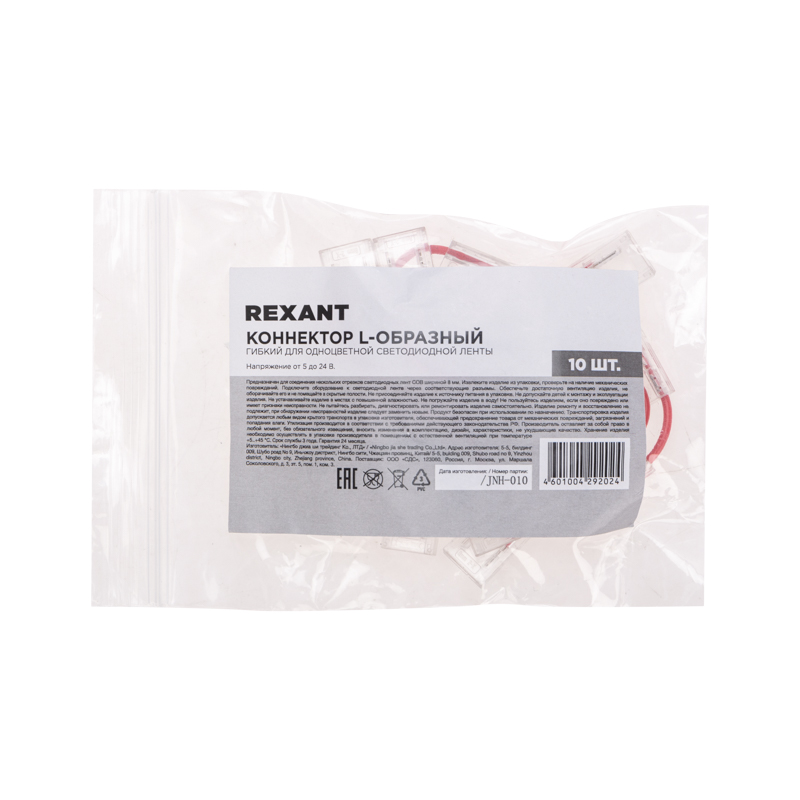 Коннектор выполнен в L-образной форме, позволяющей удобно и безопасно подключить ленты друг к другу под углом 90 градусов.