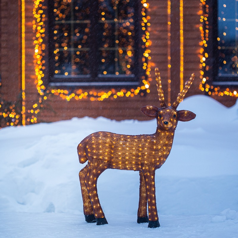Акриловая светодиодная фигура "Бурый олень" высотой 100 см, светящаяся более чем 380 ярких диодов, выполнена по специальной технологии нанесения акрила имитируя шерстяной покров реального животного. Новинка этого сезона позволит Вам создать ту самую, настоящую новогоднюю атмосферу и принести сотни радостных улыбок.