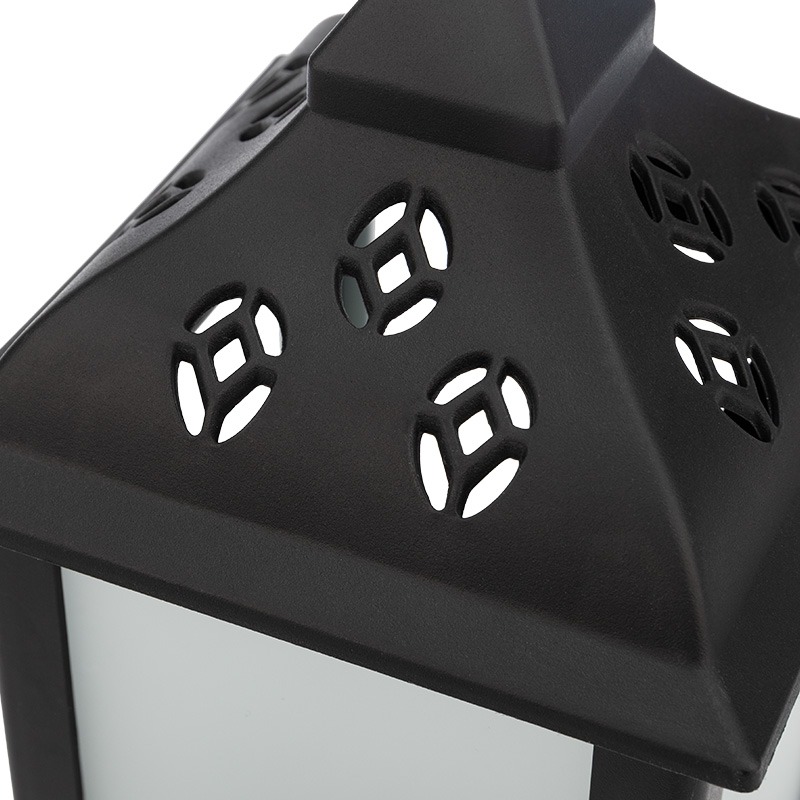 Декоративный фонарь с эффектом пламени свечи в корпусе черного цвета станет прекрасным украшением интерьера, которое гармонично дополнит обстановку, внесет нотку тепла и уюта, подарит ощущение комфорта хозяевам и гостям. В центре композиции находится небольшая пластиковая свеча, которая светится теплым белым светом и имитирует мерцание настоящего пламени. Светодиод получает питание от 3 батареек типа АА. Декоративный фонарь — это замечательный подарок к празднику, который вызовет улыбку и оставит приятные воспоминания.