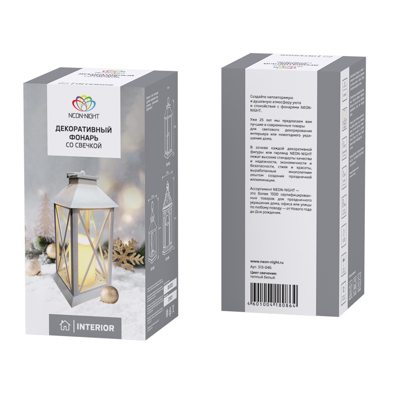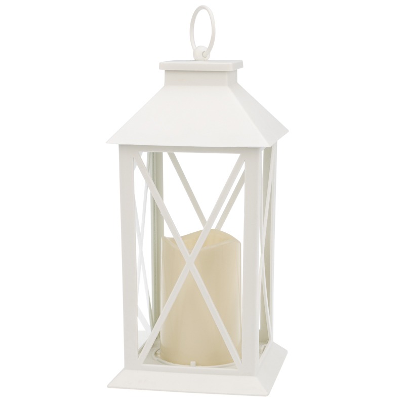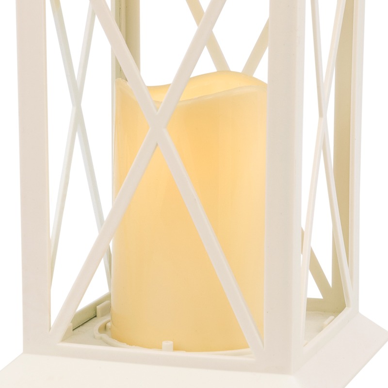 Декоративный фонарь со свечой 14x14x29 см, белый корпус, теплый белый цвет свечения NEON-NIGHT