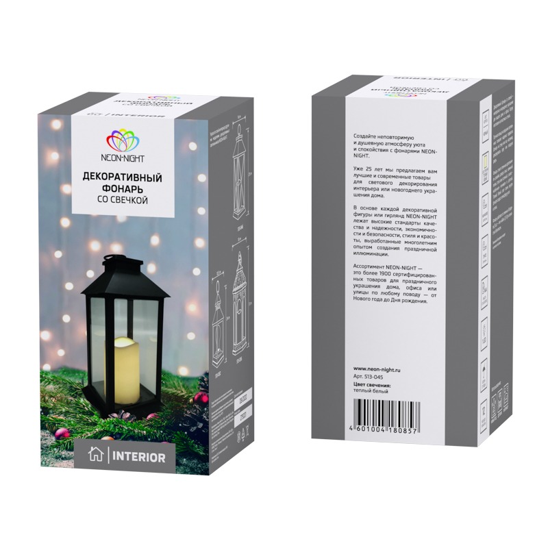 Декоративный фонарь со свечой 14x14x29 см, черный корпус, теплый белый цвет свечения NEON-NIGHT
