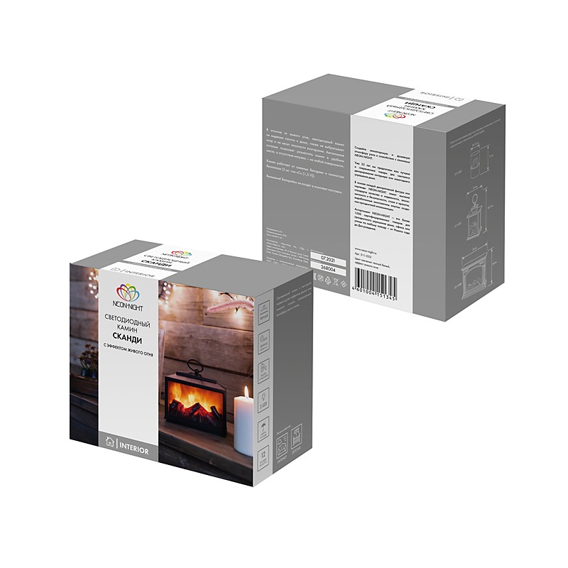 Светодиодный камин «Сканди» с имитацией живого огня станет оригинальным украшением интерьера, которое подарит ощущение тепла и уюта. Композиция из тлеющих дров подсвечивается двумя диодами, которые создают эффект медленно движущегося пламени. Одно из важных преимуществ светодиодного декора — отсутствие опасности возгорания и едкого дыма. Камин работает от 3 элементов питания типа С, что делает его портативным и абсолютно безопасным. Светодиоды экономно расходуют заряд батареек и не нагреваются.