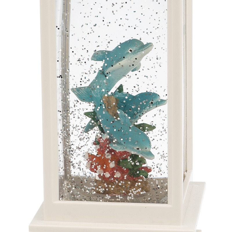 Декоративный светильник «Дельфины» — уникальное интерьерное украшение, которое создаст уют, подарит ощущение тепла, комфорта, подчеркнет вкусы и интересы хозяев дома. Диоды теплого белого свечения эффектно подсвечивают вихрь конфетти. Блестки кружатся вокруг яркой фигурки дельфинов, расположенной в центре колбы из прозрачного пластика. Светильник не требует подключения к электрической сети и может питаться от 3 батареек типа АА. В комплекте идет USB-кабель — удобный вариант, если изделие используется в качестве ночника.