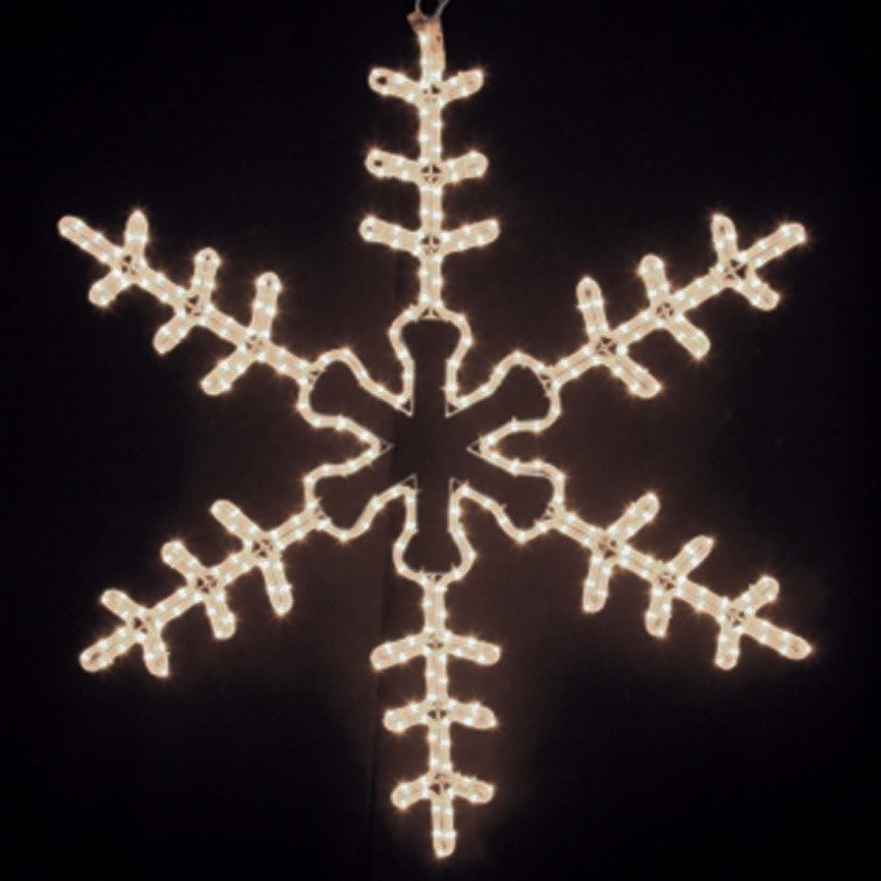 Снежинка имеет размер 95*95 см и Теплое белое свечение светодиодов.