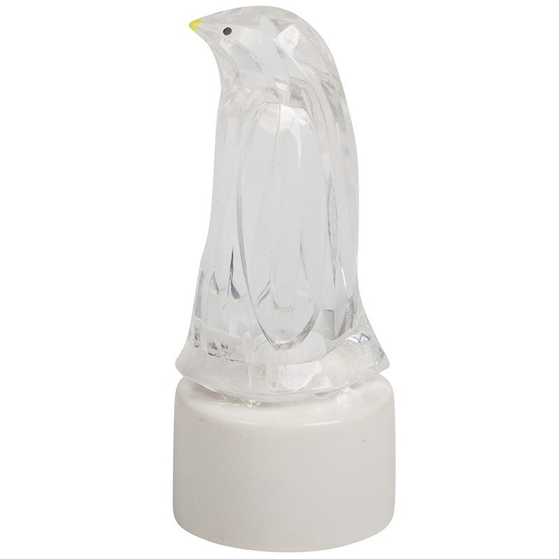 Светодиодная фигурка на подставке «Пингвин Кристалл» выполнена из полимера EVA — прочного нетоксичного пластика. Прозрачная фигурка с обработанными гранями напоминает скульптуру, высеченную из льда. В основании находится диод RGB, который меняет цвета, хаотично выбирая варианты из 256 оттенков. Изделие работает от трех батареек типа LR44, идущих в комплекте. Экономичный светодиод рассчитан на длительную эксплуатацию в условиях умеренной влажности.