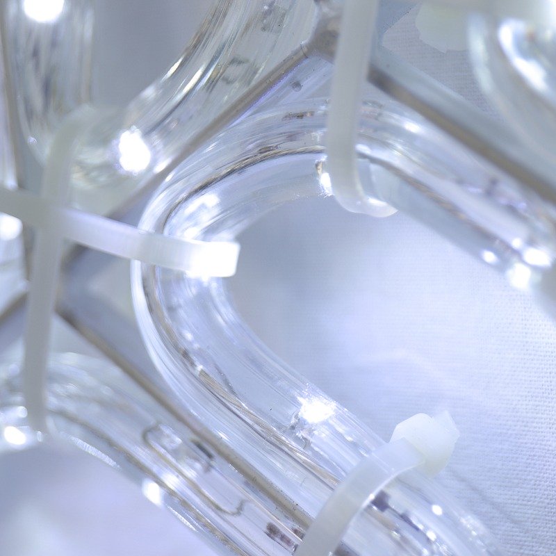 Снежинка имеет размер 55*55 см и Белое свечение светодиодов. Особенность данной Снежинки - это наличие мерцающих светодиодов Белого цвета, которые привлекают внимание и значительно преображают украшенную поверхность (мерцает каждый пятый светодиод).