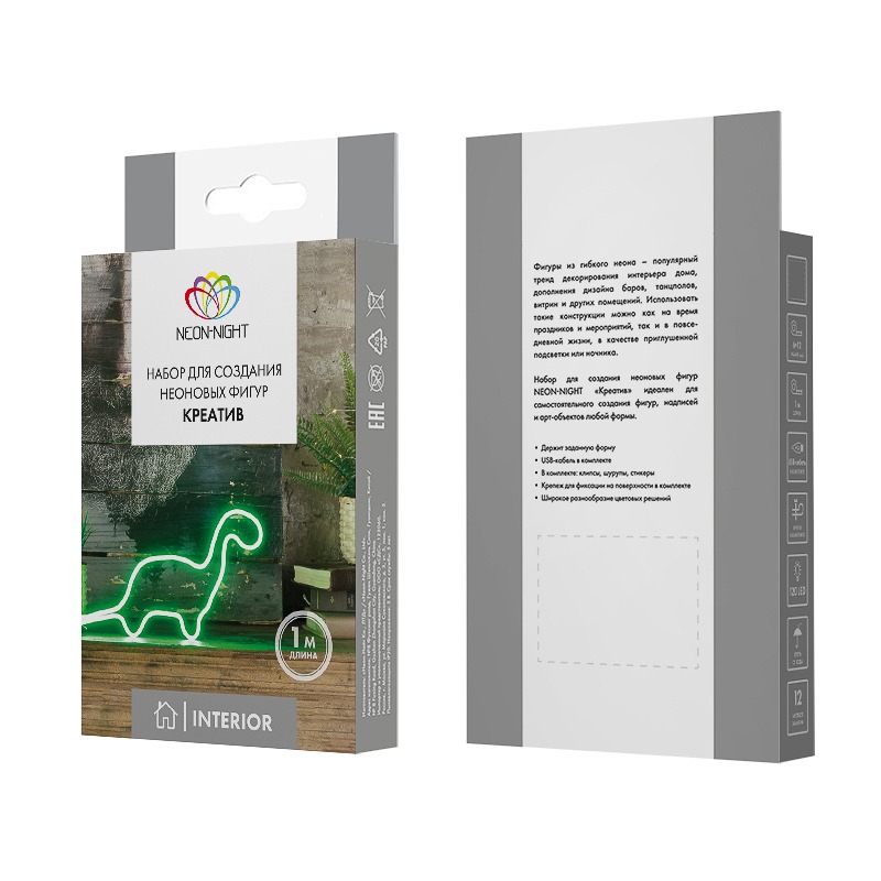 Набор для создания неоновых фигур «Креатив» — это готовое решение для создания оригинального светового интерьерного декора. В комплект входит все необходимое для монтажа: стикеры, клипсы, винтовой крепеж, USB-кабель, который можно подключить к сетевому адаптеру. Продукт представляет собой пластиковую трубку с матовой поверхностью, внутри находится светодиодная лента со 120 диодами. Элементы излучают яркий зеленый свет. Фигуры из гибкого неона станут эффектным украшением обстановки, как праздничной, так и повседневной.