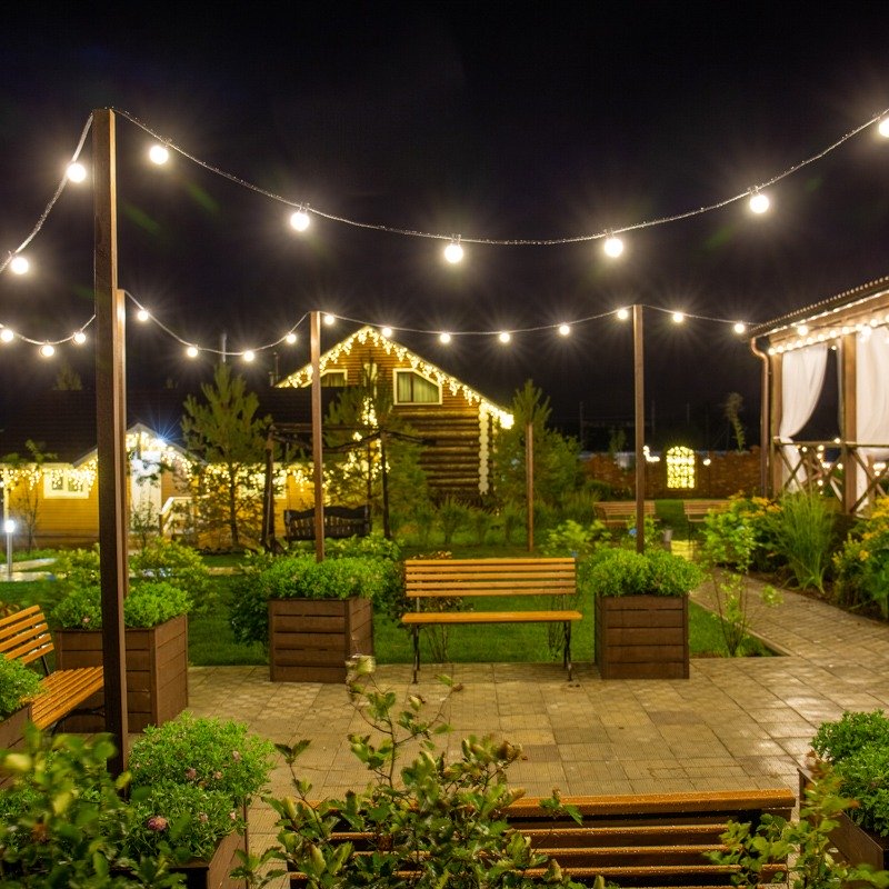 Гирлянда «Белт Лайт» прекрасно подходит для декорирования любых архитектурных сооружений или для создания «перетяжек» между опорами освещения или деревьями.